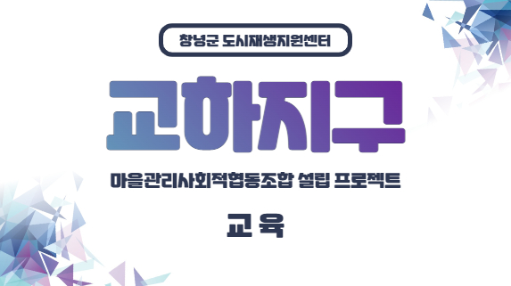 - 이전글20211027 창녕군 도시재생 지원센터 교하지구 마을관리사회적협동조합 설립 프로젝트 교육 4회차 21.12.29