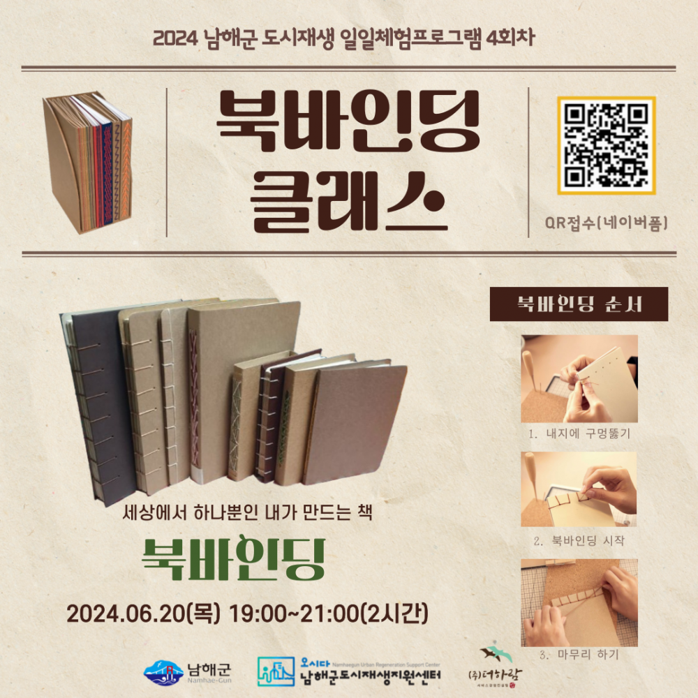 [2024 남해군 도시재생 체험 프로그램] 원데이 프로그램으로 북바인딩 클래스 수업을 진행합니다.